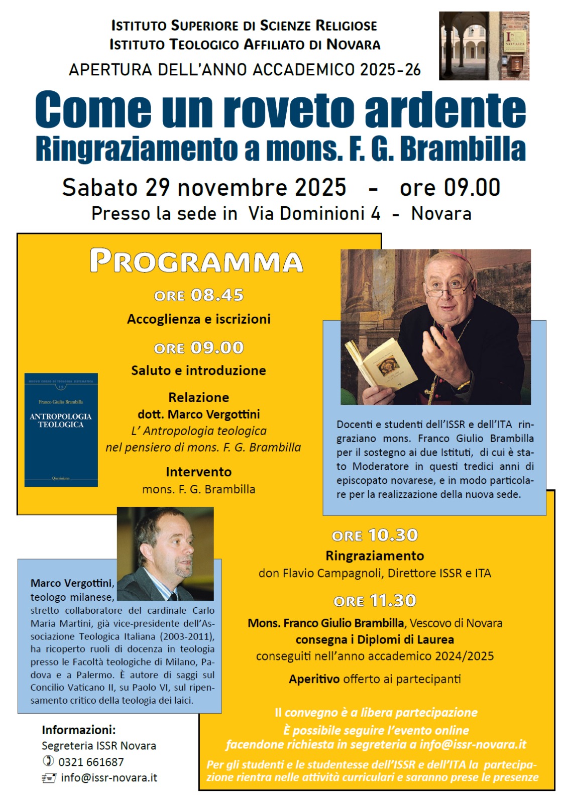 Come anticipato alla fine dello scorso Anno Accademico, tutti gli Studenti e i Docenti della Sede Centrale della Facoltà Teologica e dell’Istituto Superiore di Scienze Religiose di Milano sono invitati a partecipare all’Assemblea Generale degli Studenti, che si svolgerà giovedì 30 Ottobre dalle 16:15 alle 17:35 in Aula 2 e in collegamento dall’Aula 1 con il seguente programma: 16:15-16:30 comunicazioni da parte dei Rappresentanti degli Studenti 16:30-16:55 intervento del prof. Stercal e del prof. Cozzi … Continua a leggere Assemblea Generale degli Studenti